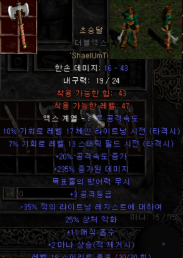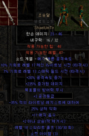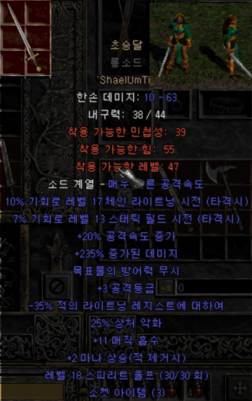 디아블로2는 룩딸이기 때문에 착용 시 모습도 중요합니다. 저는 확실히 워소드 취향입니다.