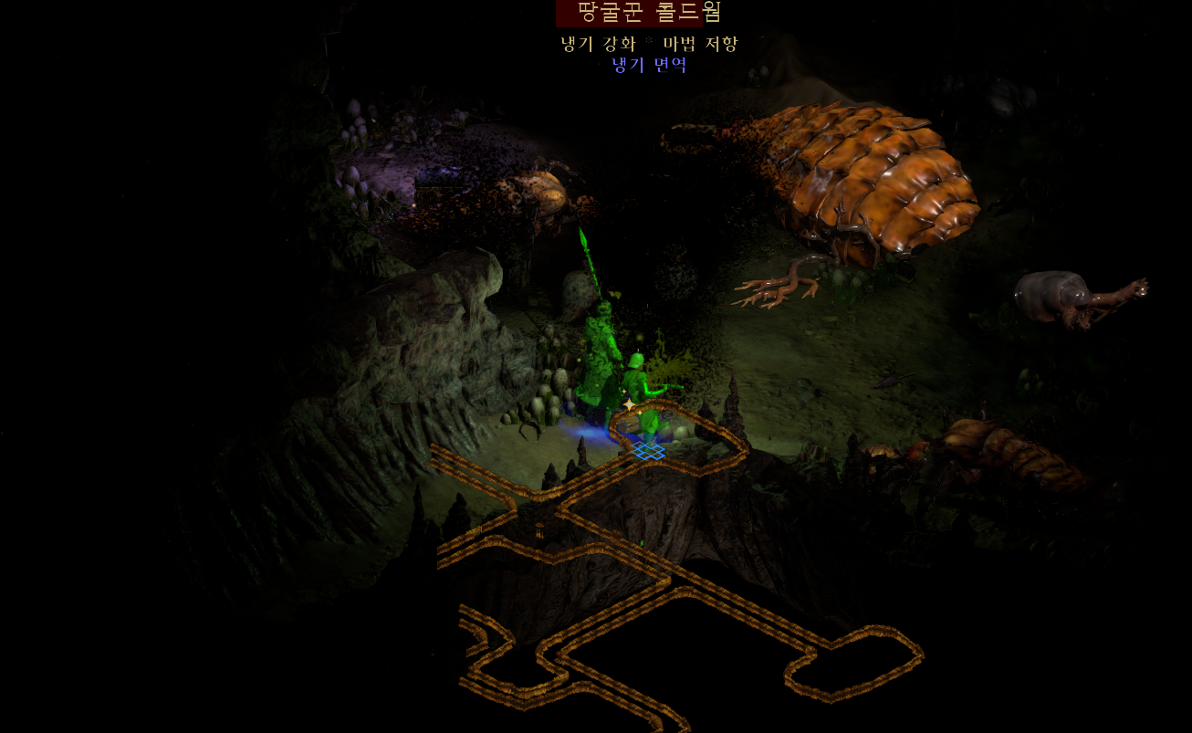 궤짝 앞에는 네임드 몬스터인 땅굴꾼 콜드웜이 있습니다. 이것을 먼저 처리하고 궤짝을 엽니다.