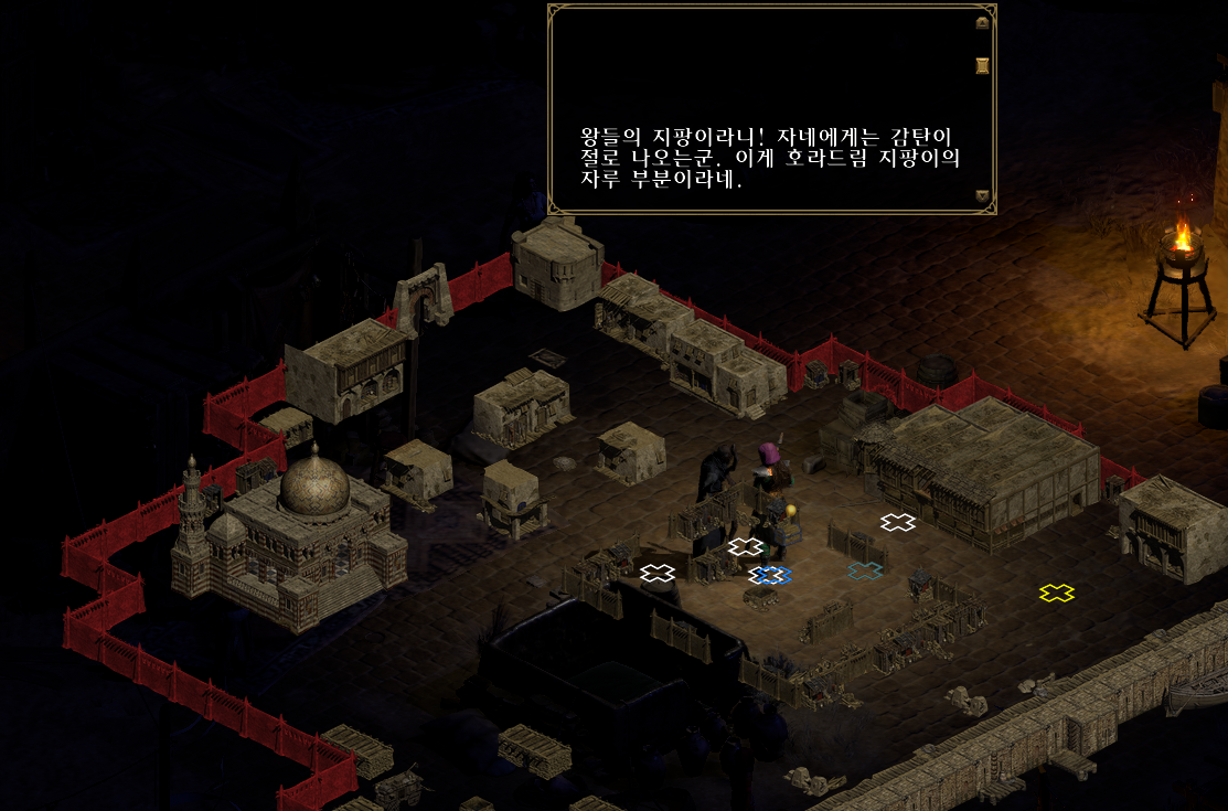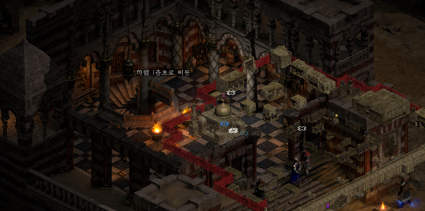 이전에는 경비들이 막고 있어서 진입을 못했는데 지금은 진입이 가능합니다. NPC와 대화 후에 하렘 1층으로 이동합니다. NPC와 대화를 하면 액트2 6번째 퀘스트인 일곱 개의 무덤(탈라샤 무덤) 퀘스트가 활성화됩니다.