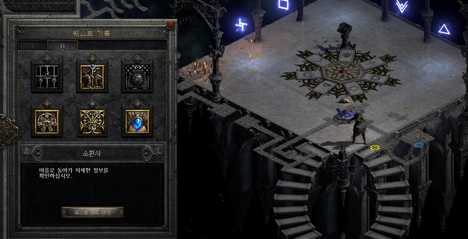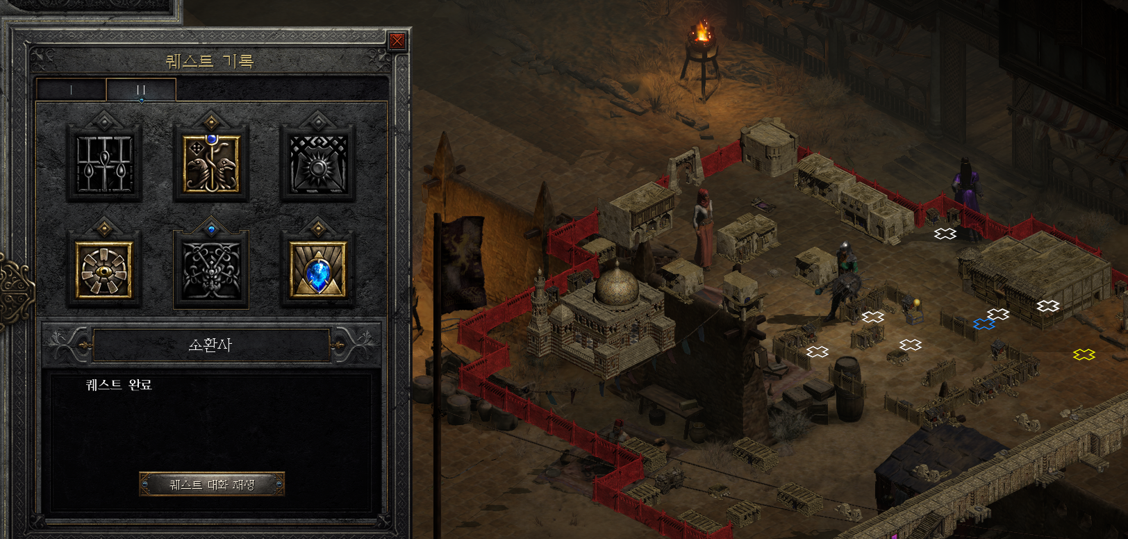 마을의 NPC중 1명에게 말을 걸면 액트2 다섯번째 퀘스트인 소환사 퀘스트가 완료됩니다.
