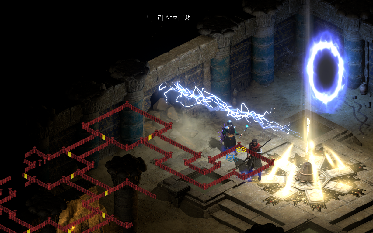 죽을 때를 대비해 마을 차원문(타운포탈)을 미리 열어놓고, 탈라샤의 방으로 들어갑니다.