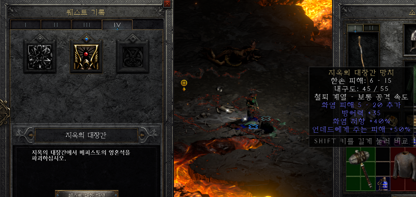 -액트3에서 메피스토를 제거하고 구했던 메피스토의 영혼석을 불길의 강에 위치한 지옥의 대장간으로 가져가서 파괴하는 퀘스트입니다.