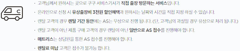쿠쿠정수기는 내가 원하는 곳으로 서비스 기사가 출장 방문하는 출장 AS 서비스가 가능합니다.