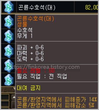 - 곤륜수호석(대) 1강 옵션 : 피해 증가 16/ 피해 감소 5 파괴/마력/도력 +0~6